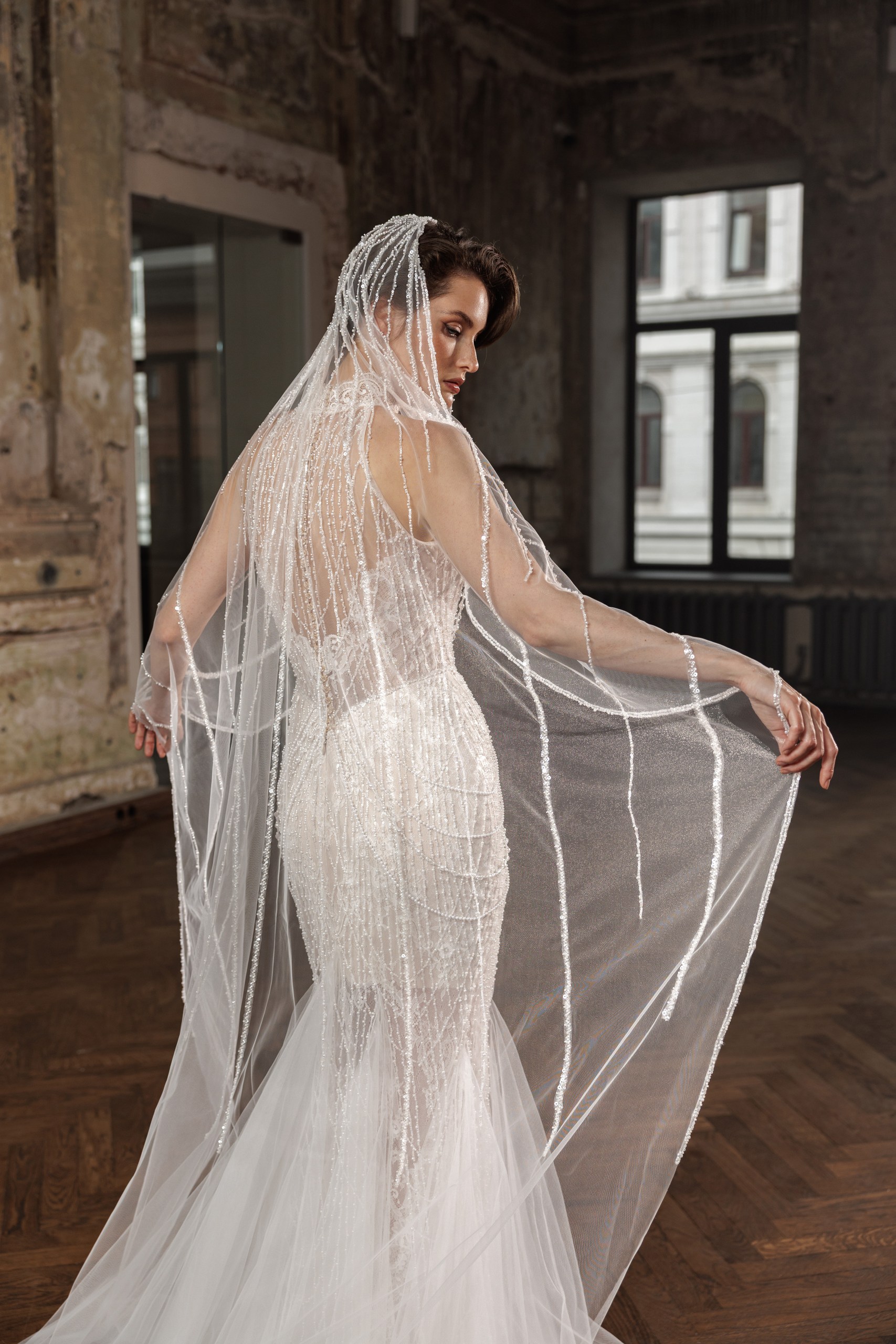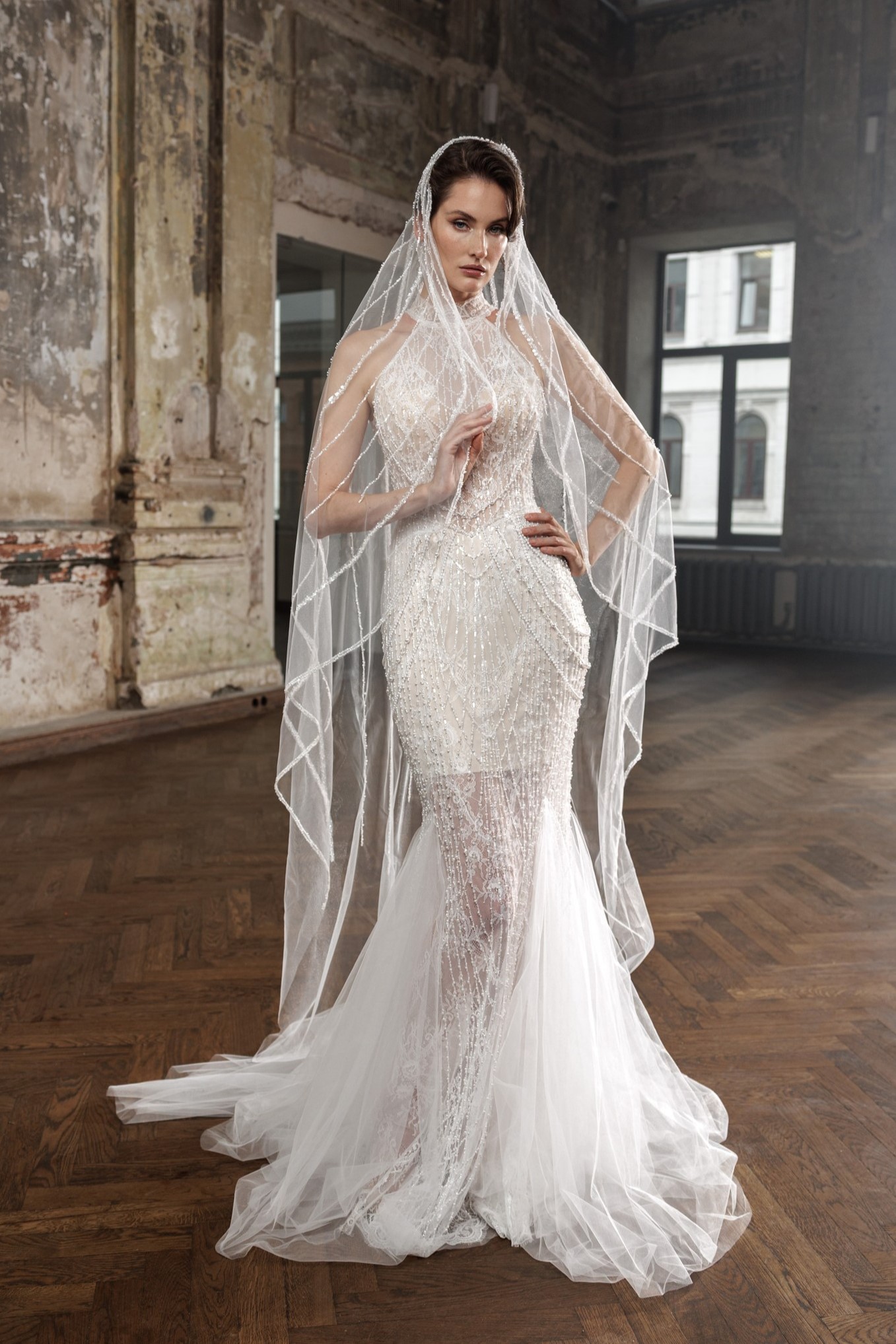 Lexi (Лекси) с фатой, телесное, с короткой подкладкой, без съемных бус по плечам