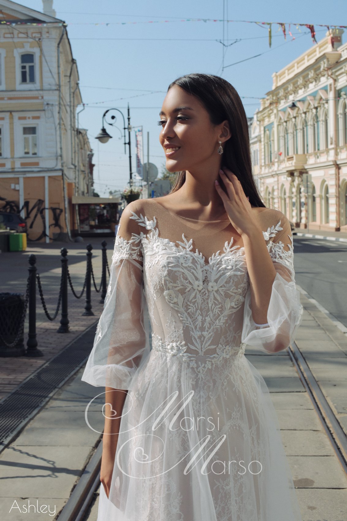 Невероятно изящное платье покоряет нас сочетанием грации и чувственности. Легкое, нежное, романтичное Ashley - каждая невеста выберет и оценит свои нотки в этой гамме акцентов. Вариативность образу добавляют легчайший съемный шлейф и возможность выбрать форму и длину рукава.