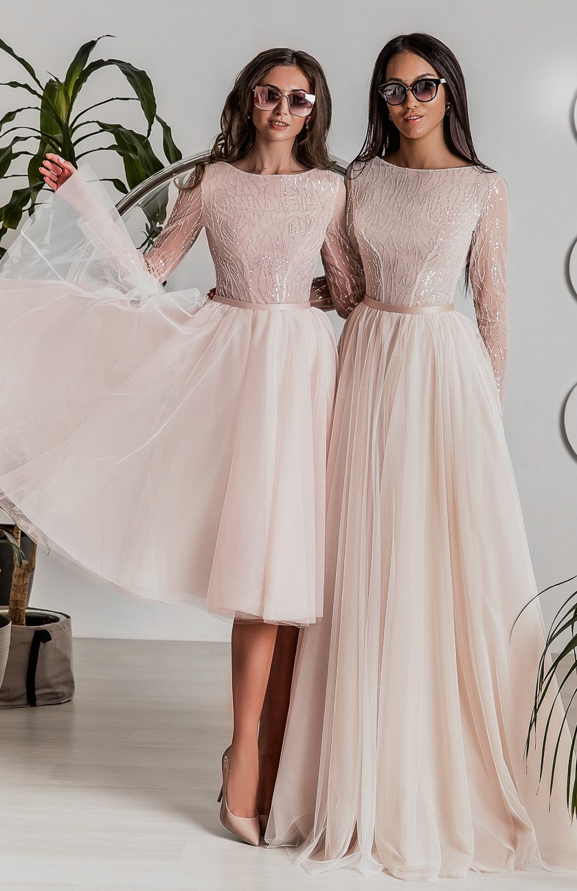 Одна из самых популярных моделей в коллекции - легкая, непосредственная и ультра актуальная! Поражает воображение множество вариантов, которые можно получить, опираясь на базовую модель: с длинным рукавом или с коротким, или вообще без рукава, с корсетом или без корсета, классическое молочное или жемчужно-серое с бликами пайеток... Важно, что все эти вариации очень популярны, как у невест, которые ценят трендовость модели, так и у выпускниц, которым по душе такое милое и задорное платье!