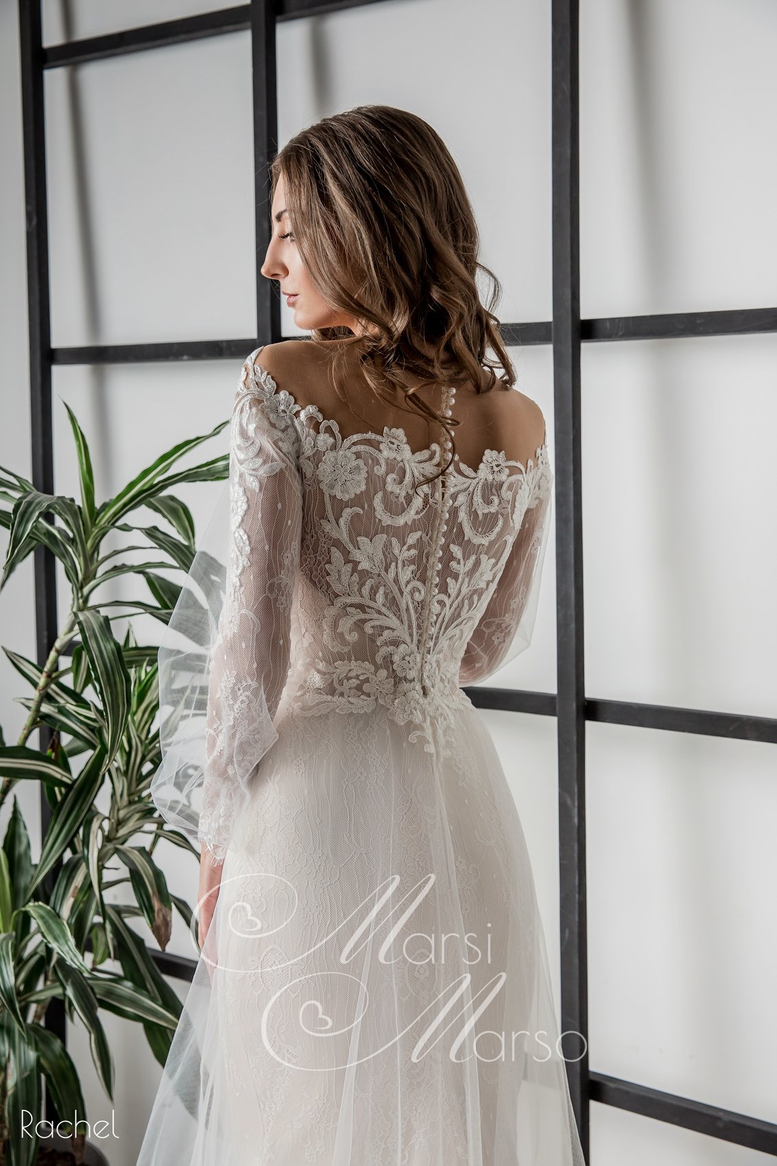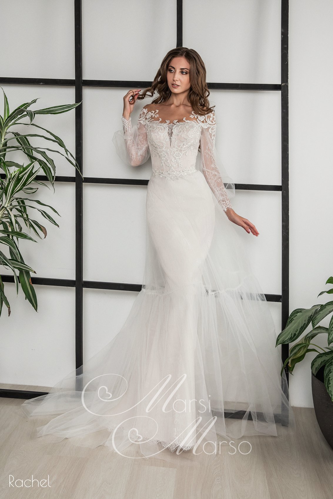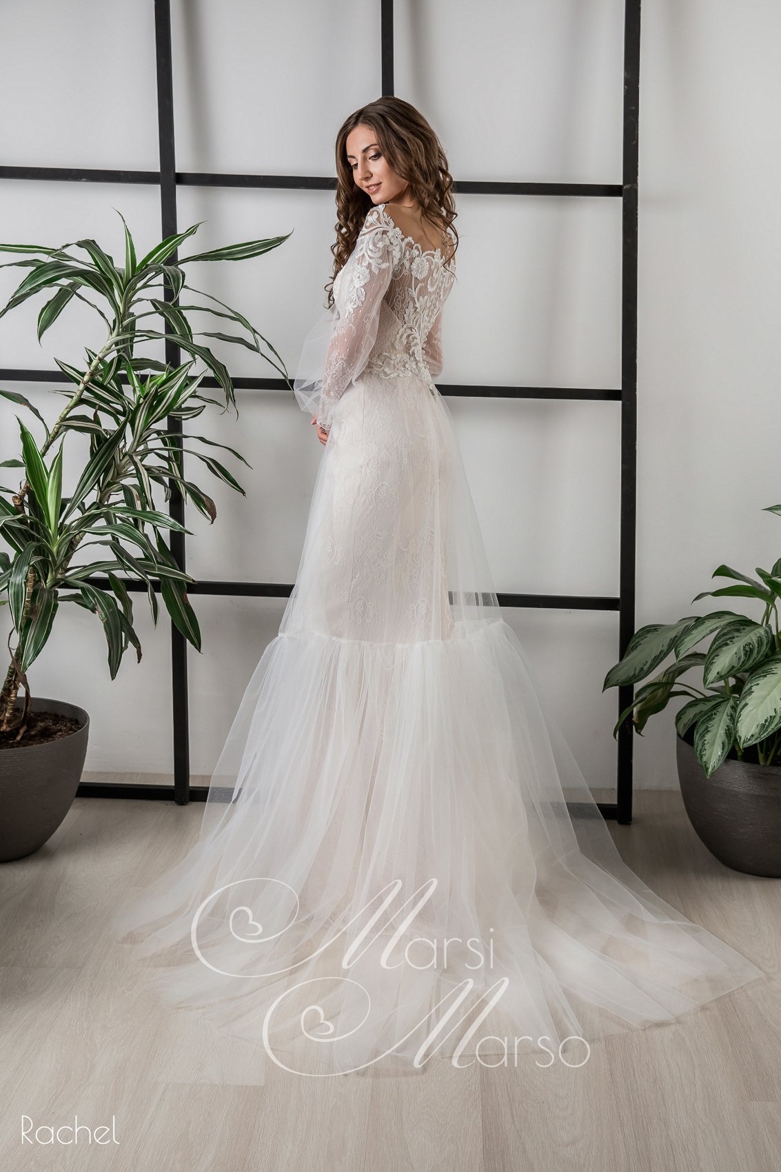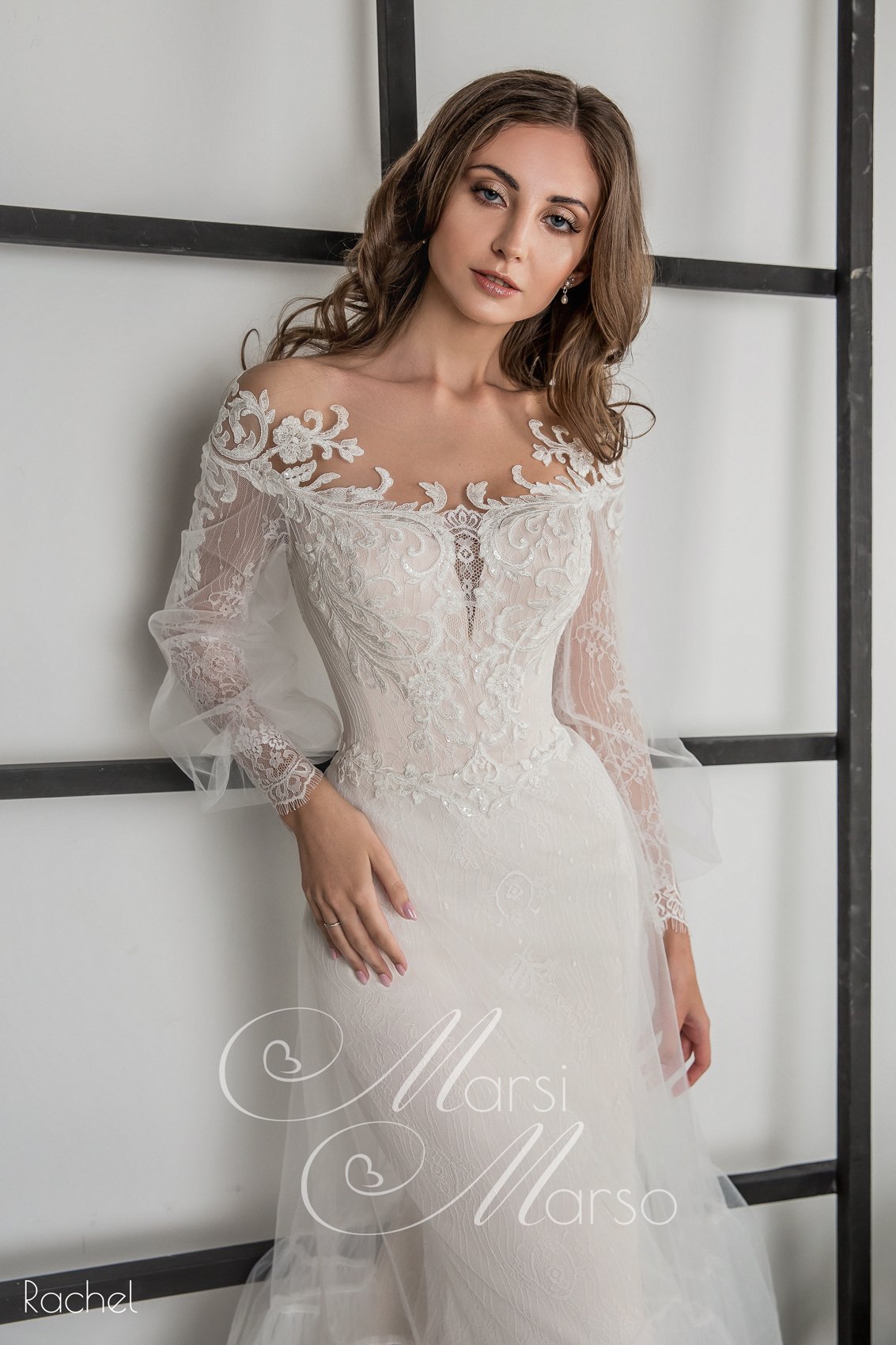 Rachel - абсолютно уникальная модель, которая намекает на чувственную загадочность и изюминку, присущую каждой девушке. Открытая линия плеч, обрамленная расшитым кружевом, благородство стиля и ювелирный крой делают эту модель незаменимой в коллекции каждого салона!