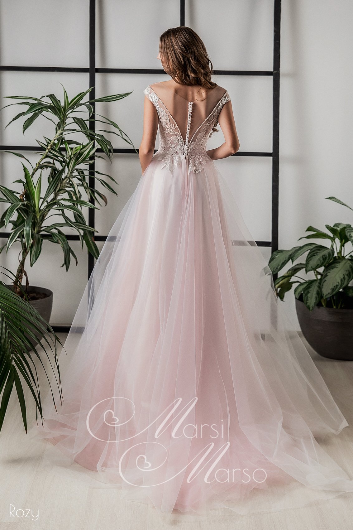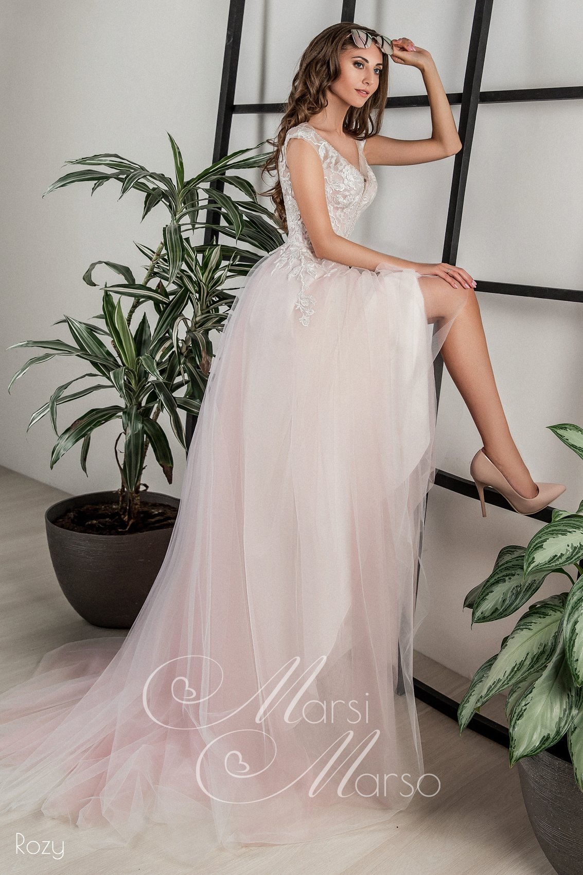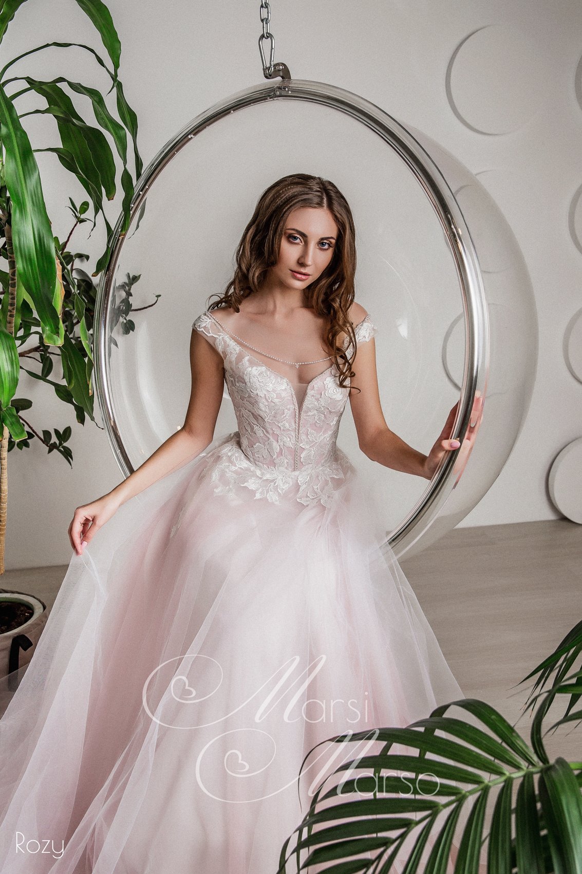 Очень деликатная модель в нежно-розовом оттенке пудры. Атмосфера торжества будет окрашена в романтичные тона, а невеста, безусловно, станет центром притяжения всех самых искренних эмоций!