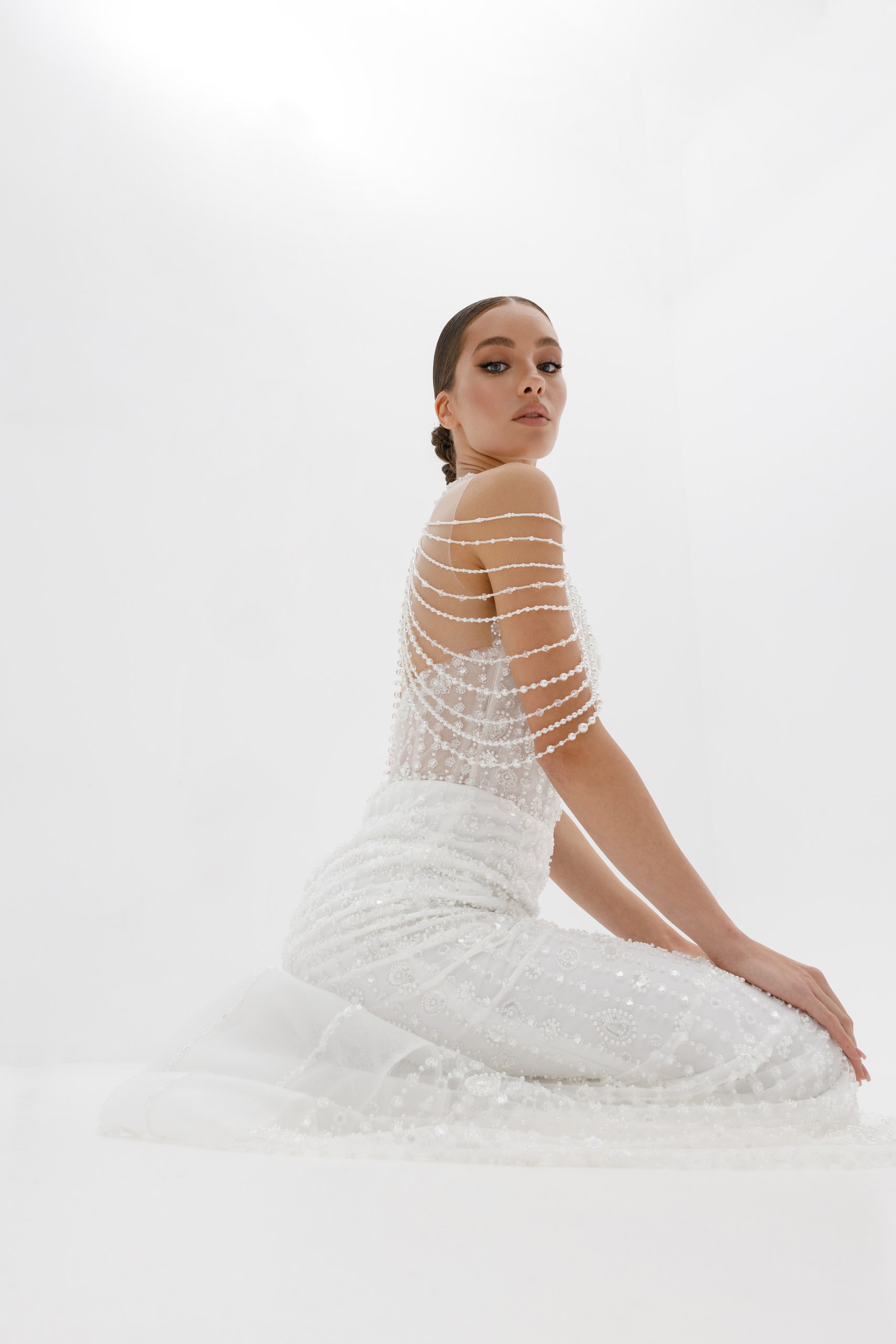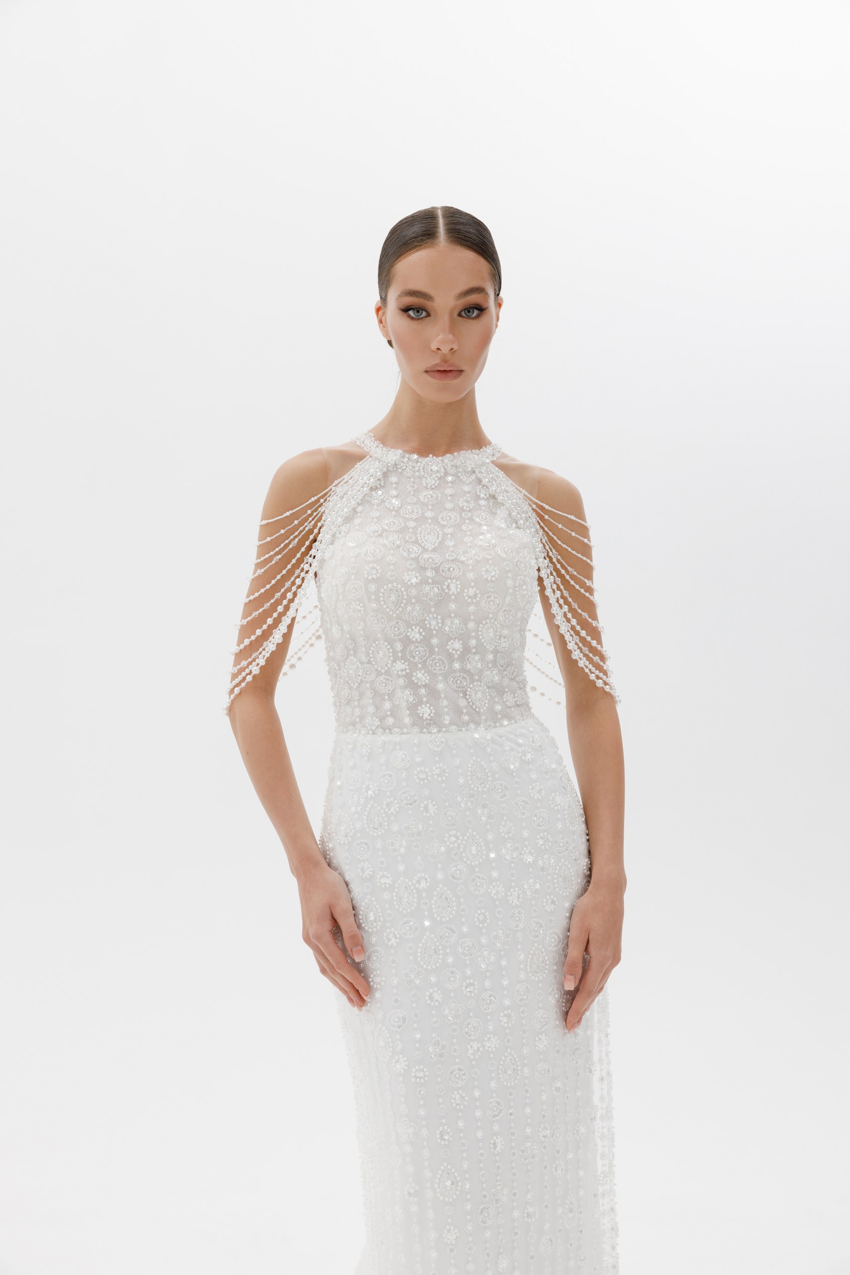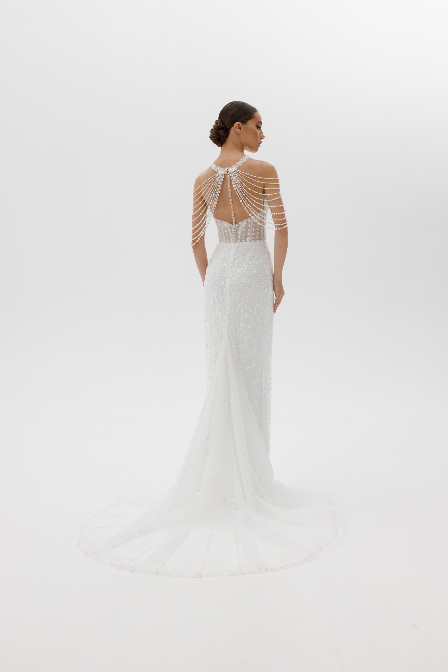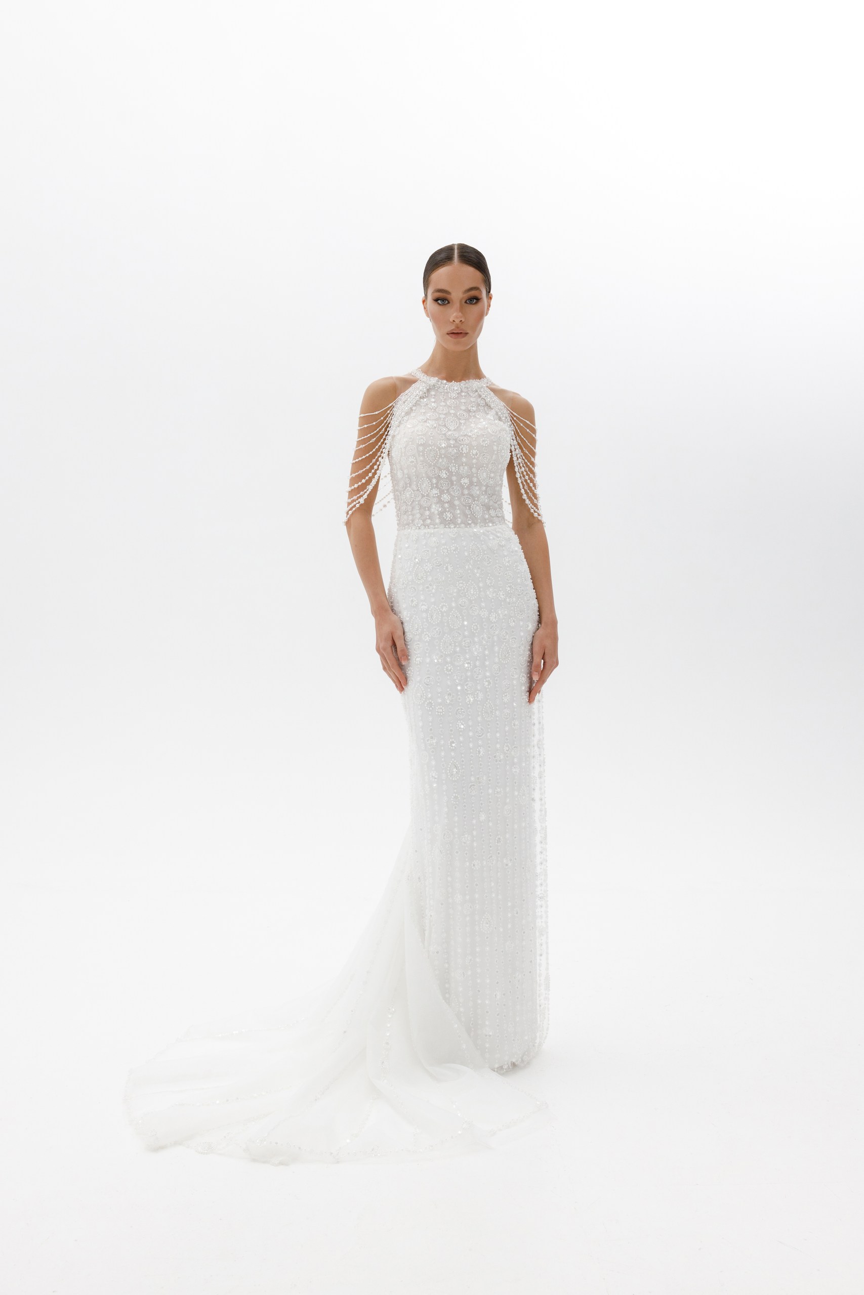 Dalis (Далѝс)Premium. Шикарное силуэтное свадебное платье выполнено из кружева, богато расшитого бисером и пайетками.