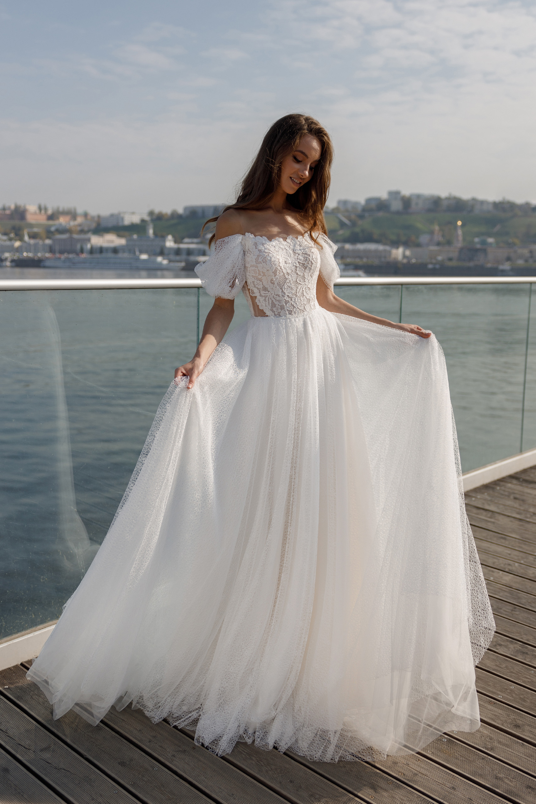 Нежное и воздушное, как облачко, платье Fancy, покоряет своей утонченностью. Топ на телесной сетке имитирует открытый корсет. Этот прием делает платье комфортным по посадке. Вырез лифа украшает вышивка бисером. Юбка и бретели из фактурной сеточки «круги». Отличным дополнением станут съемные кружевные рукава Evelyn