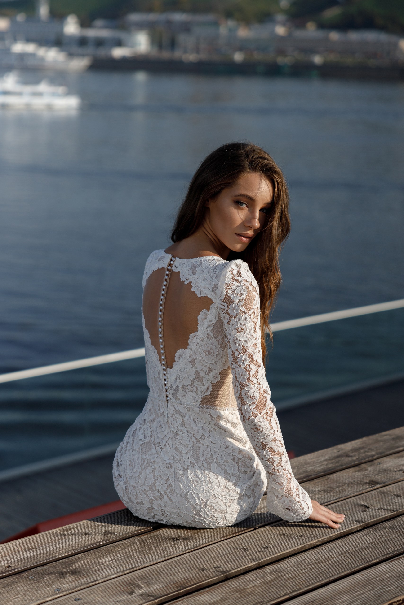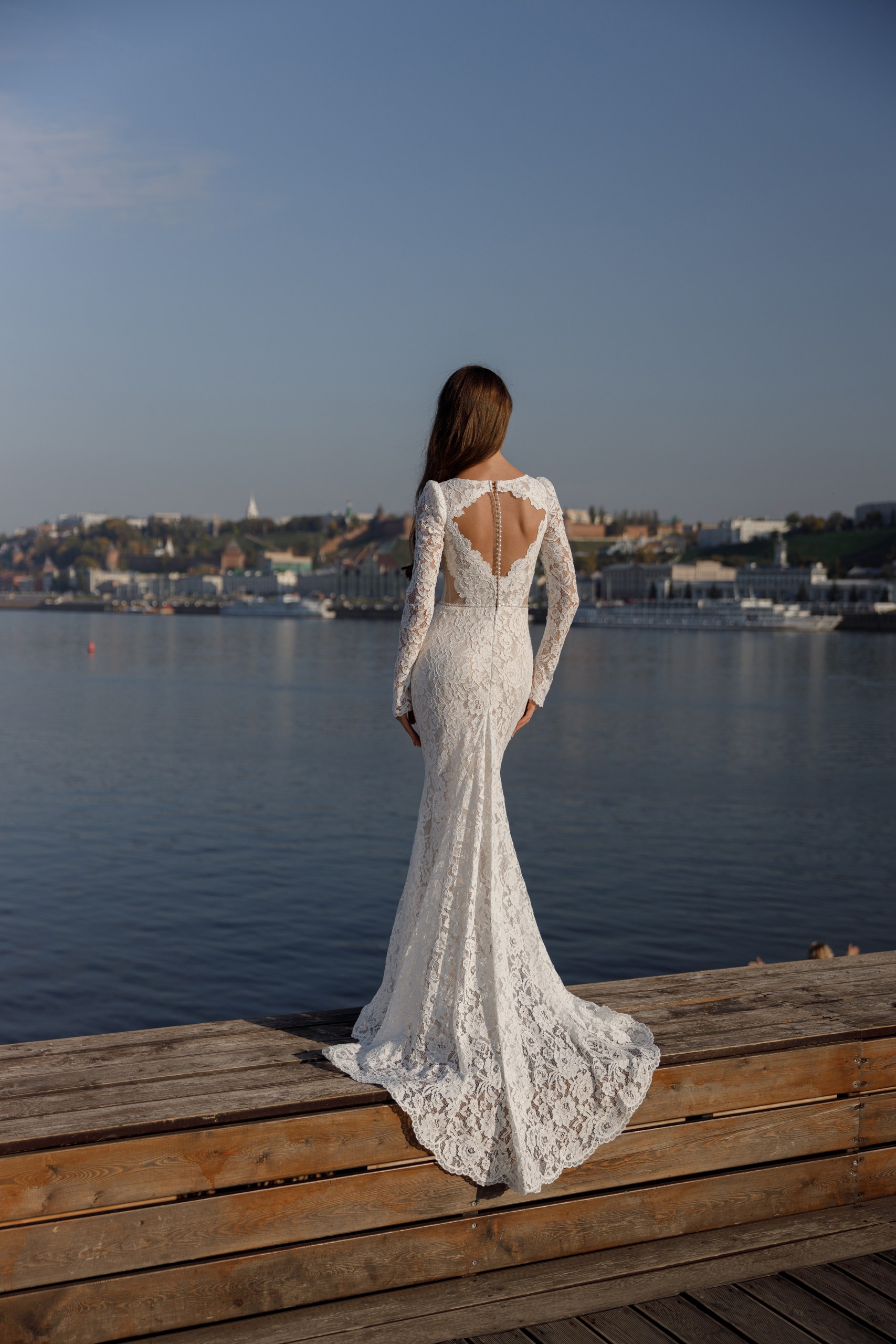 Чарующая своим точеным силуэтом кружевная «рыбка». Открытые бочка, вырез ромбом на спинке, расклешенные на запястье рукава делают модель ультра современной. Вырез лифа украшает росшив бисером и пайетками. Безупречную посадку обеспечивают стрейчевое кружево и трикотажная основа юбки. Модель отлично подойдет на широкий размерный ряд.