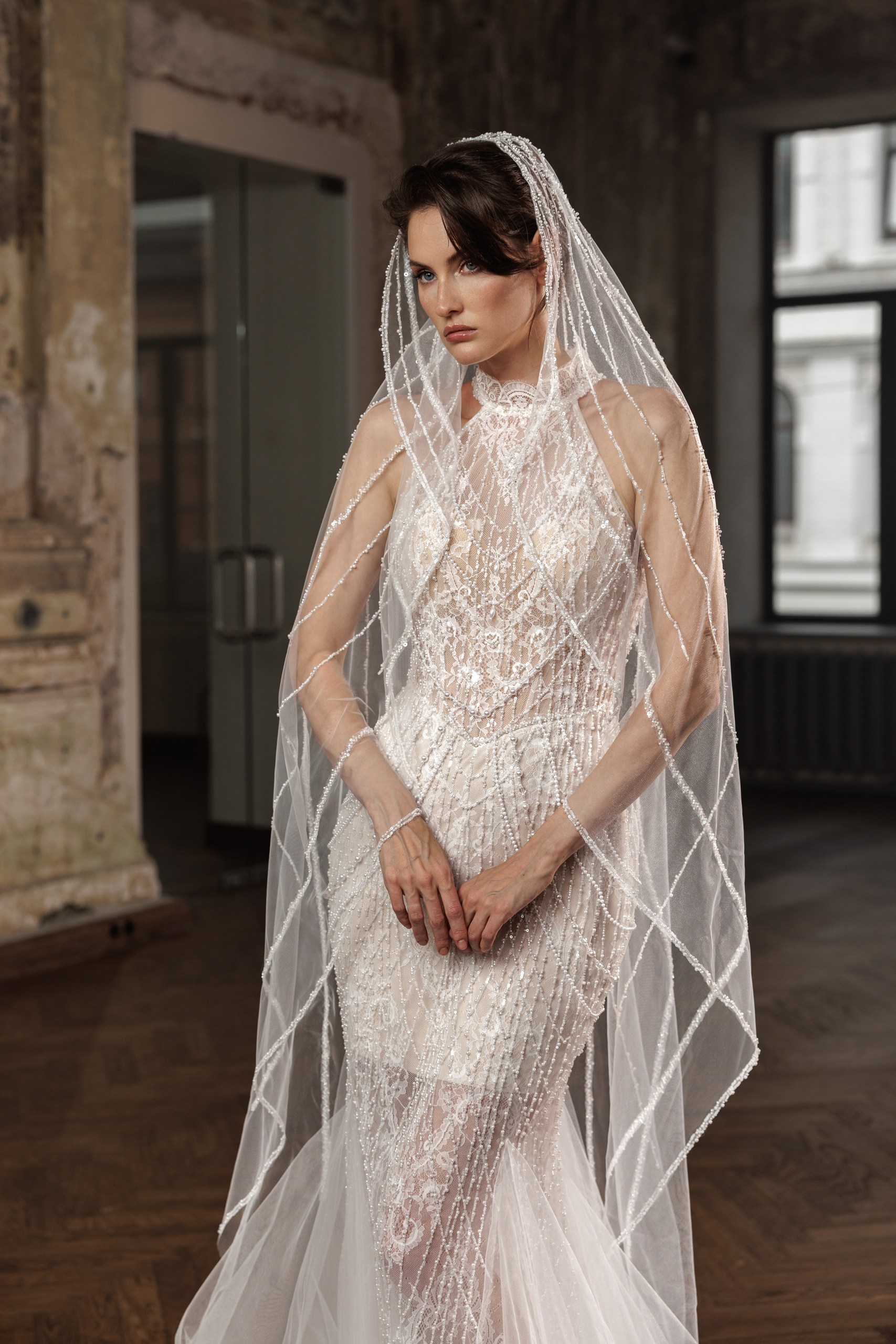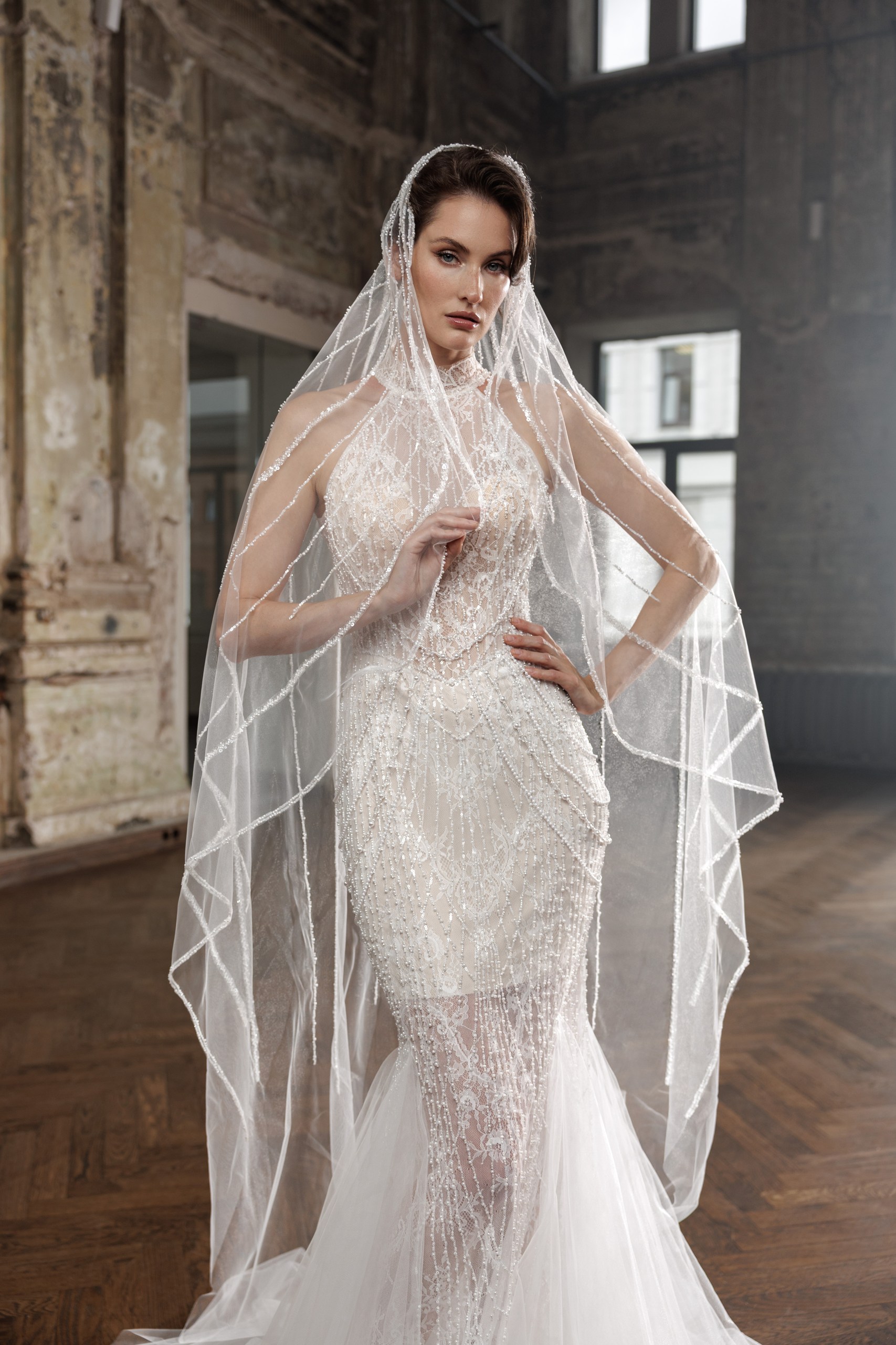 Lexi (Лекси) с фатой, телесное, с короткой подкладкой, без съемных бус по плечам