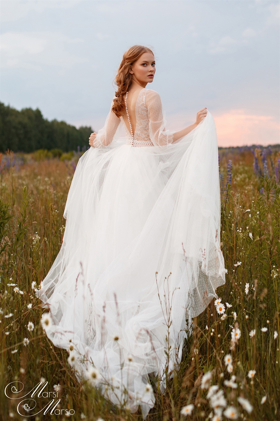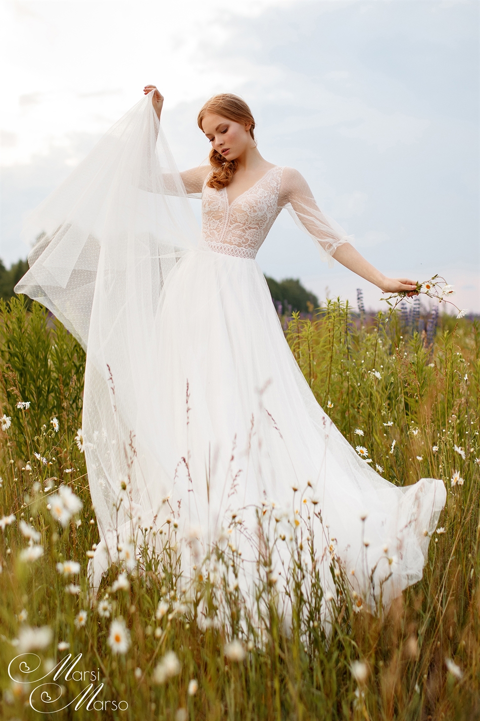 воздуха. Именно тот любимый многими вариант, когда «ничего лишнего» и в то же время, не отвести глаз! Тончайший ажур шантильи для самых чувственных и нежных невест.