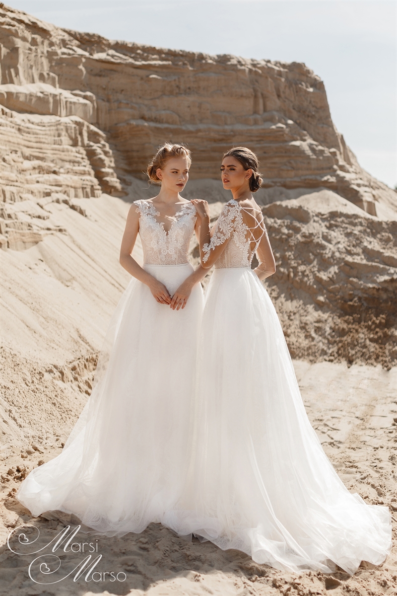 Сияние — то кодовое слово, которое позволяет войти той или иной модели в топовый спрос. Christine Lux имеет все необходимые атрибуты, чтобы покорить сердца многих невест: роскошная юбка сияет узором из пайеток, топ покрыт мерцающими кружевными аппликациями, обнаженная спинка интригует изящной тесьмой.