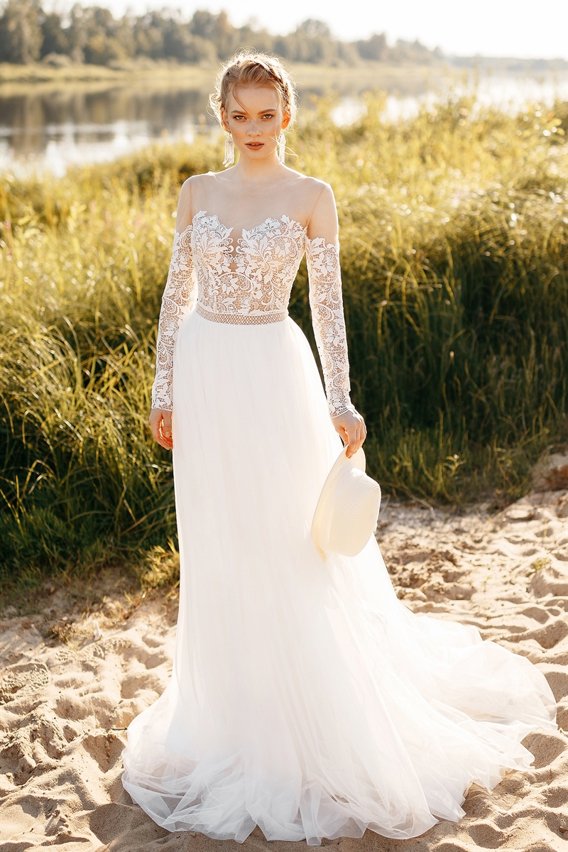 А-силуэт. Топ из вискозного кружева-макраме на стрейч основе. Юбка из мягкой сетки и фатина