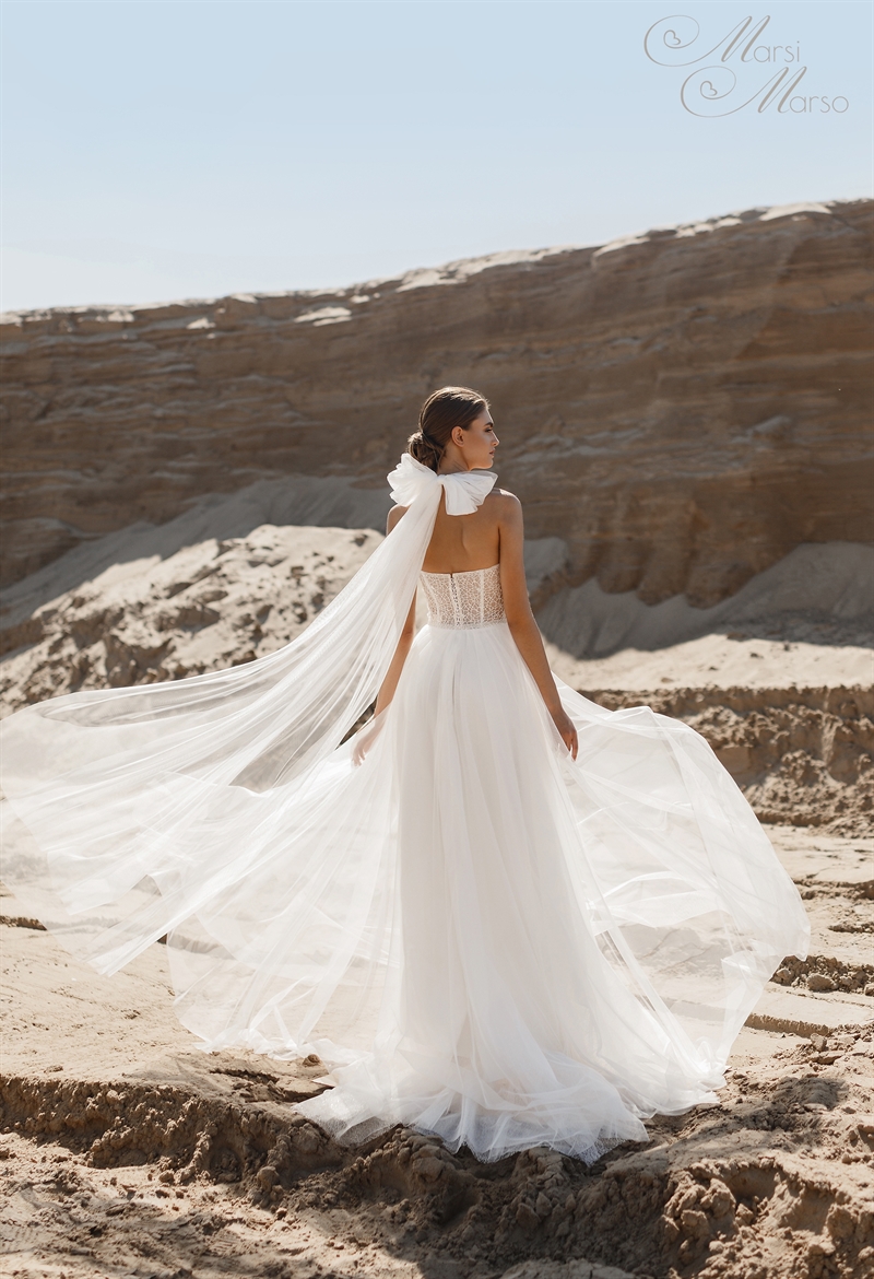 Надоели однообразные силуэты и шаблонные решения? Кто сказал, что свадебное платье обязано быть строгим и скучным! Модель Irene, однозначно, находка для невест с фантазией и воображением. Не менее трех способов разнообразить лиф и спинку платья можно обнаружить в этой модели благодаря длинным бретелям-трансформерам. А дополнение в виде съемных рукавчиков с высоким кружевным манжетом не оставит модницам шансов забыть про это платье!