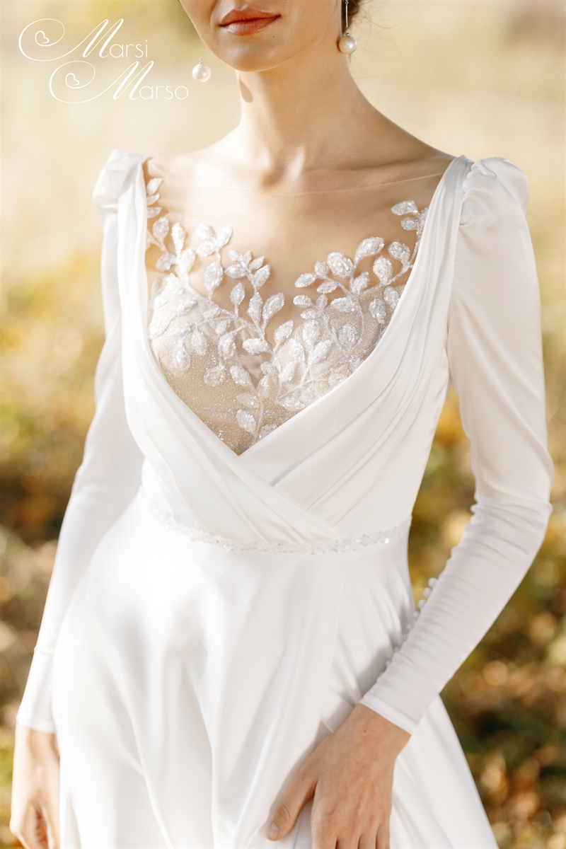 Как известно, образ создают детали. Модный силуэт Jozephine становится неотразимым благодаря лифу, выполненному из кружева, густо расшитого пайеткой. Не случайно дизайнерская находка покорила сердца многих модниц — от изящного силуэта и сияющего кружева не оторвать глаз!